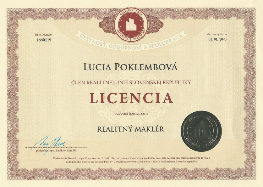 Realitná únia SR je združenie realitných profesionálov, ktorí na realitnom trhu poskytujú klientom prvotriedny servis. Udelením licencie sa stáva realitný maklér členom Realitnej únie SR s odbornou špecializáciou.