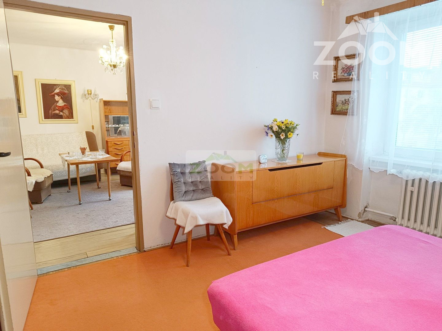 Byt pozostáva zo vstupnej chodby, troch izieb, kuchyne, kúpeľne s WC, špajze a z pivnice.
