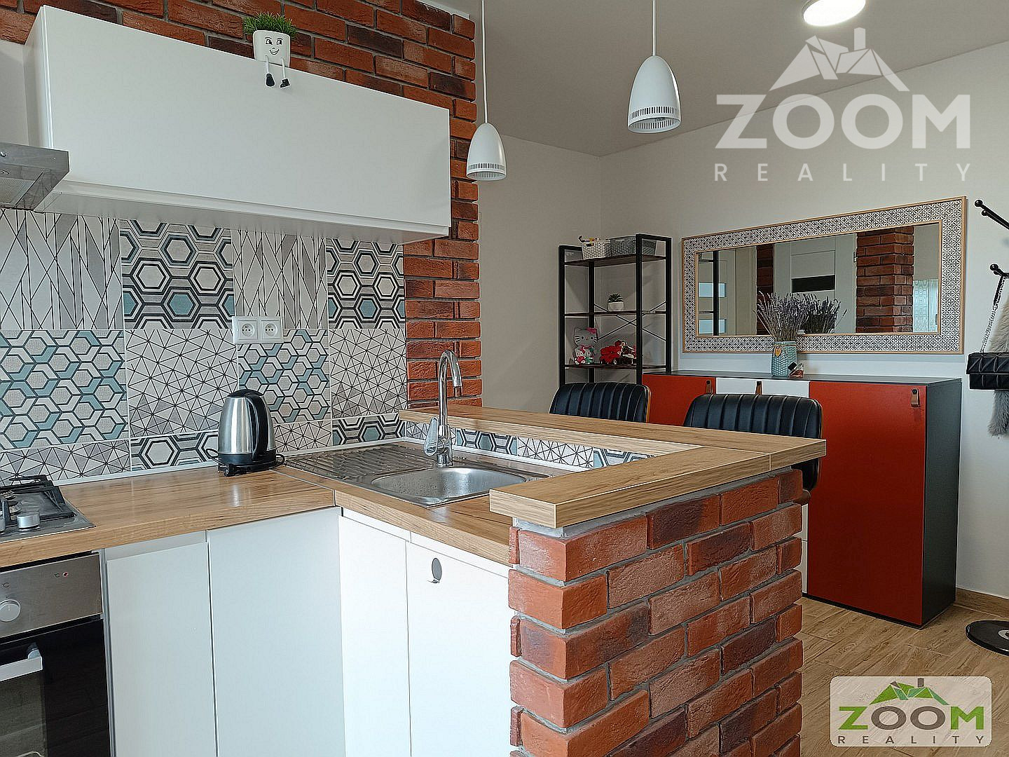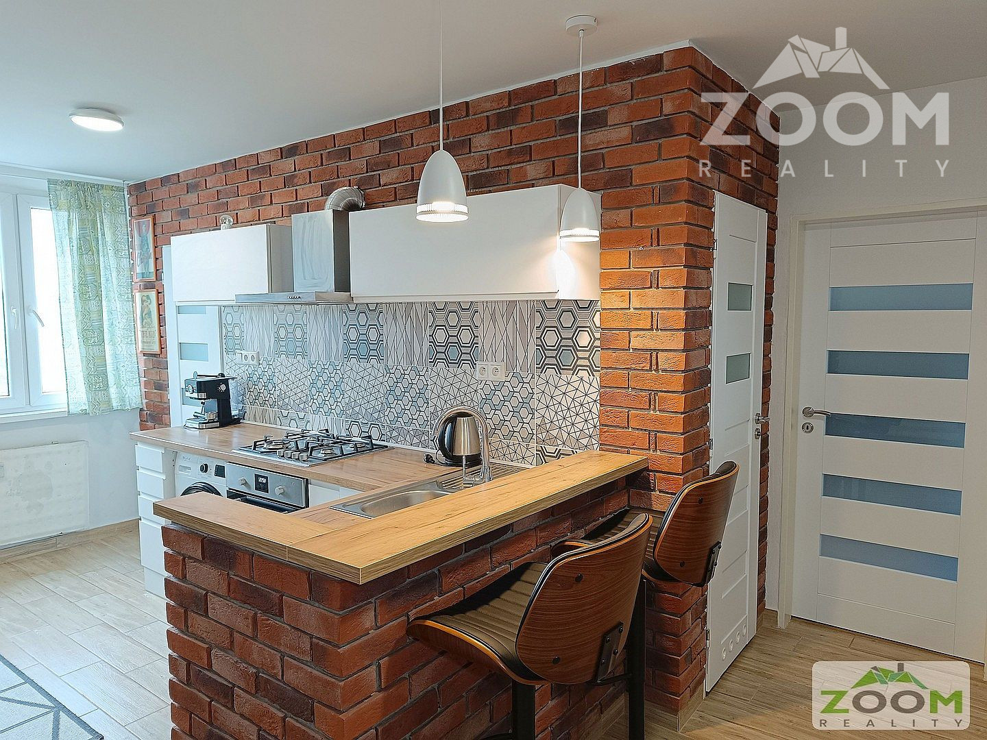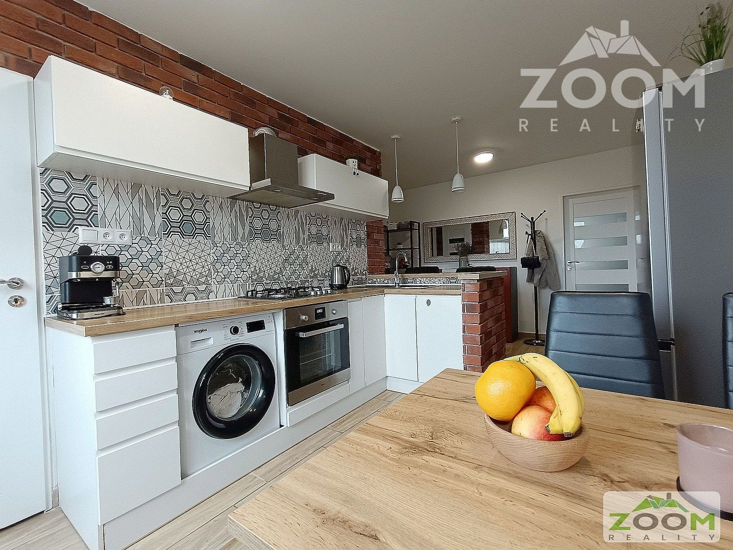 – nová kuchynská linka na mieru s barovým pultom, vrátane vstavaných elektrospotrebičov (el. rúra, plynová doska, digestor, automatická práčka),