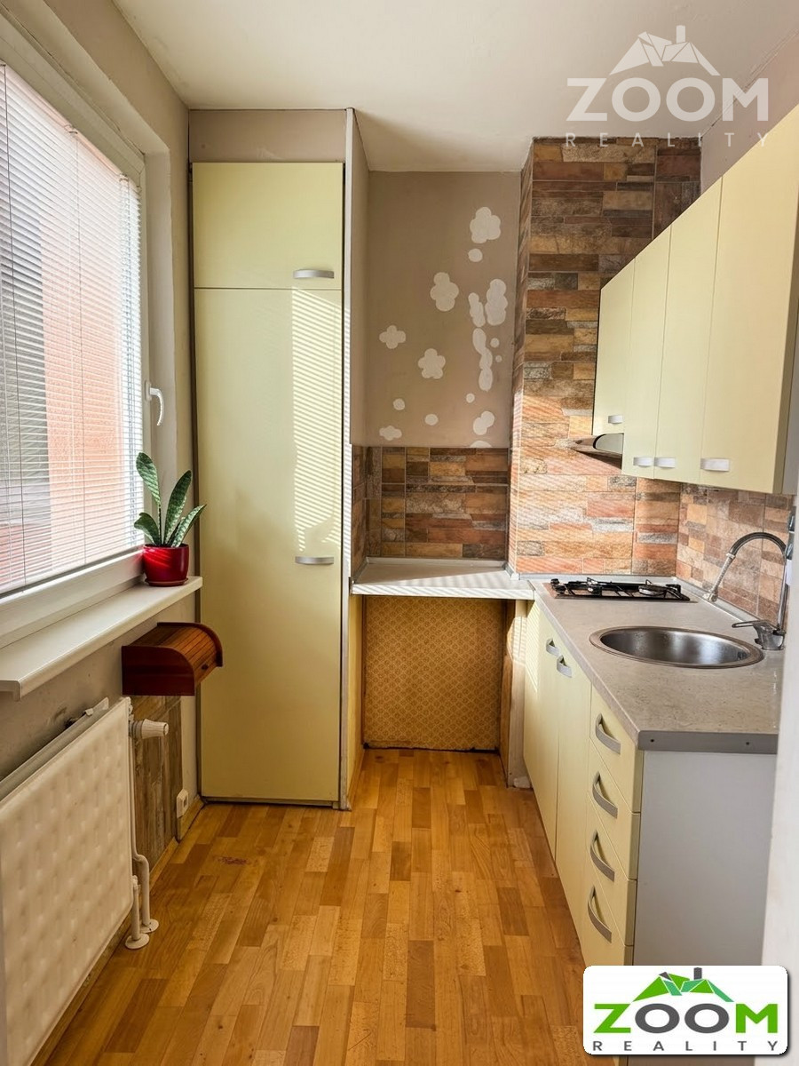 Byt sa nachádza vo vyhľadávanej a pokojnej časti sídliska a pozostáva zo vstupnej chodby, jednej priestrannej izby, kuchyne, kúpeľne s toaletou a pivnice.
