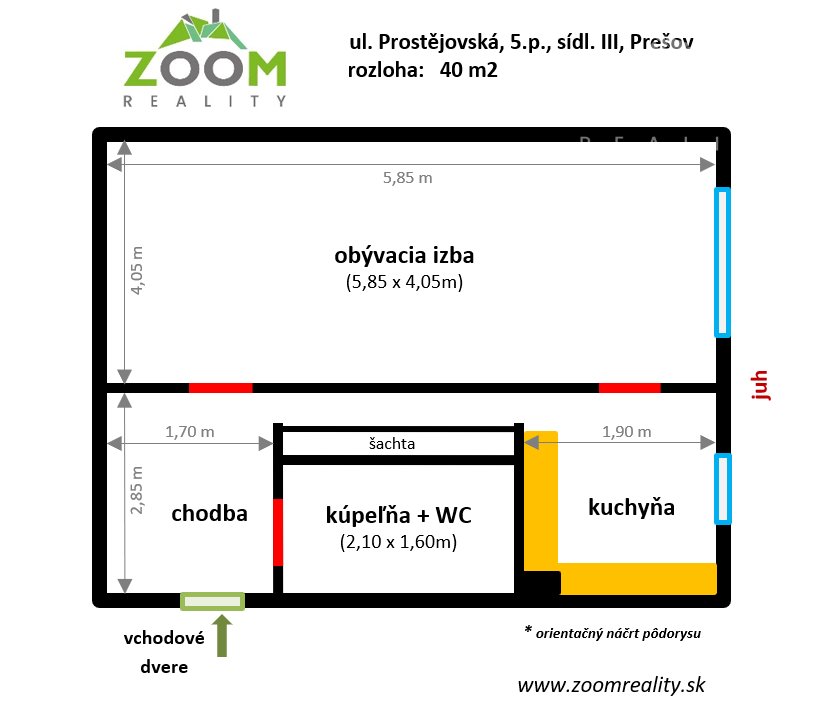Orientácia bytu: juh (obývacia izba, kuchyňa),