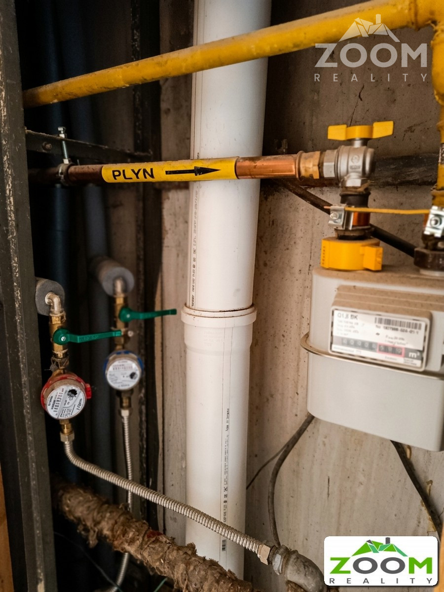 V byte sú osadené plastové okná so žalúziami, zánovná kuchynská linka a bytové jadro je murované.